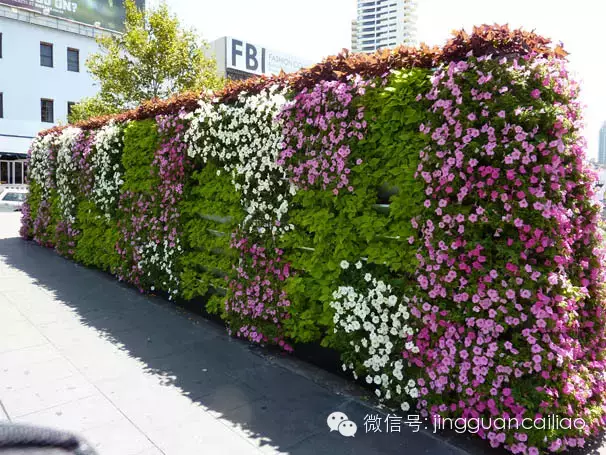 a)、墙面绿化的植物配置受墙面材料、朝向和墙面色彩等因素制约。粗糙墙面,如水泥混合沙浆和水刷石墙面,则攀附效果最好;墙面光滑的,如石灰粉墙和油漆涂料,攀附比较困难;墙面朝向不同,选择生长习性不同的攀缘植物。